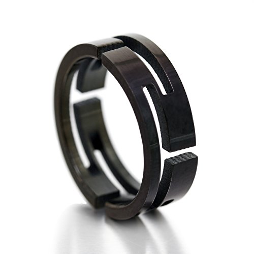 -. Feature : 【 材 質 】 ステンレス / 【 リング幅 】 約6.5mm 【 重 さ 】 約4g / 無骨な立体加工。薬指から親指まで。シックに決めたいメンズコーデに超オススメ / 光の角度で色味が変わる奥行き感のあるブラックステンレスを採用 / 様々な表情を見せてくれる飽きのこないデザイン。好感度UP間違いなし!