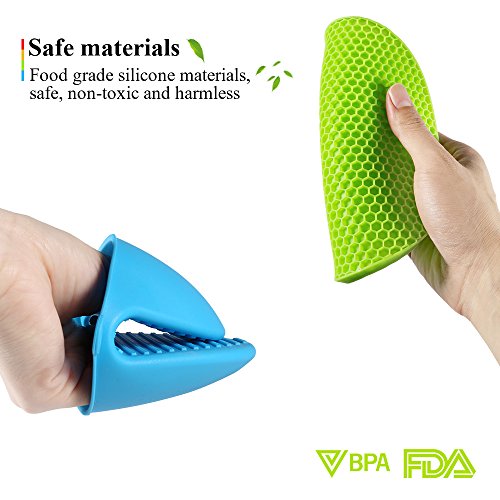 ◆ FOOD GRADE SILICONE. Both trivet mats and pot holders use the safe materials, non-toxic and harmless BPA free. Please feel free to use it.