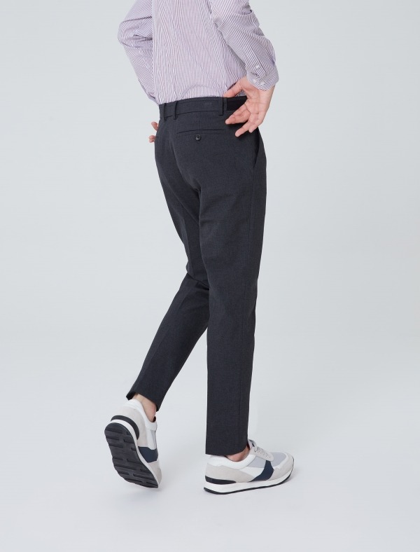 솔리드 컬러에 베이직한 디자인으로 심플한 멋을 연출하는 슬랙스입니다. 테이퍼드 핏에 사이드 밴딩 디테일로 슬림한 라인이 연출되며, 허릿단 이면 후크 여밈으로 단정한 외관을 보여줍니다. 사이드 포켓을 적용하여 간단한 소지품 수납이 가능하며 다양한 상의와 함께 코디하여 모던한 스타일링을 완성할 수 있습니다