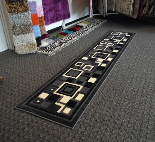 This modern area rug runner will serve as a beautiful focal point in your hallway, entrance, kitchen etc. This rug is made in Indonesia from 100% olefin that is durable stain resistant and easy to clean and maintain.