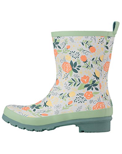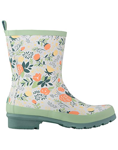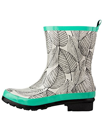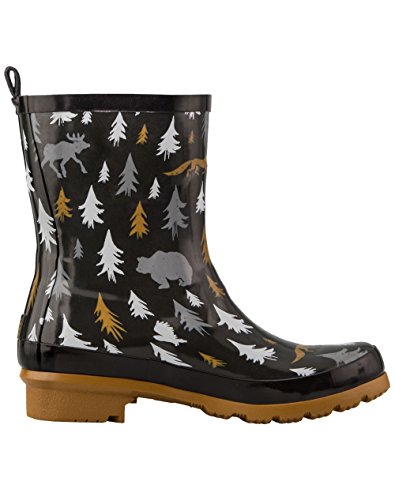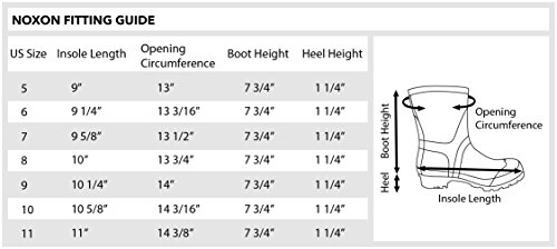Binding : Apparel Product Description Add springy charm to a gloomy day with the NEW Oakiwear Noxon® Ankle Rain Boots. Look like sunshine no matter what the weather, and feel comfortable too in these cute rain boots. These 100% waterproof women's rainboots for adults are made to look great no matter what the occasion, in addition to handling all of your rainy day adventures! Our rain boots reach 7 ¾ inches up the calf, so they keep you dry and fashionable. The 1 ¼-inch rubber block heel keeps your feet up higher, protecting them from cold and precipitation. Count on your Women's Oakiwear Noxon® Ankle Rain Boots as a bright spot when the weather turns gloomy. Our rainboot features a glossy finish for style and easy cleaning. These short rainboots for women are easy to pull on and include a soft and warm cotton lining. These rainboots for adults typically run small so please check our Oakiwear-specific sizing guide to ensure you're ordering the perfect size. Comes in half sizes from 4 through 11, and also comes in sizes 12, 13, and 14. Measure your heel to toe for length, and the circumference of your calf for the desired width. Height is standard. Look and feel incredible in our designer-style boots. Have fun matching your favorite boots to your favorite outfit. These stylish, cute rain boots come in Wildlife Tracker, Midnight Floral, Storm Gray, Mint Leaf, Hunter Green Khaki, Coral Roses, and Black. These boots give you an adorable yet sophisticated look at an affordable price. Sleek and functional, these great women's rain boots are a must-have in wet or cold weather. 0