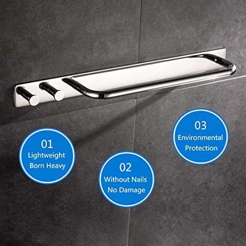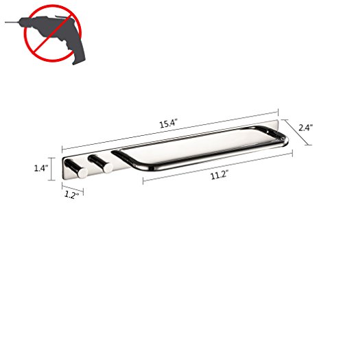 HAOXIN Hand Towel Holder with 2 Hooks ,3M Self Adhesive Wall Mounted,Kitchen 11.2-inch Stainless Steel Towel Bar Rack Brushed Finish,J-GC01 …
