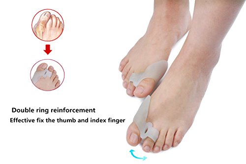 The package is designed for bunion Corrector and bunion relief. It not only keeps the big toe in the correct alignment during recovery or for every day relief,but also be adjusted to prevent valgas on the big toe. With this durable medical grade toe spacer positioned between your toes, you'll find that your bunion problem will slowly fade away.