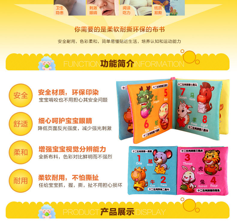 0-1-3岁宝宝启蒙婴儿立体儿童撕不烂益智玩具早教幼儿小布书