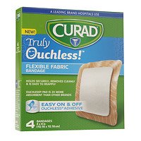 -. Title : Curad Truly Ouchless Flexible Fabric Bandage, 4 x 4 inch (10.16 x 10.16 cm), 4 ea Pack of 2
