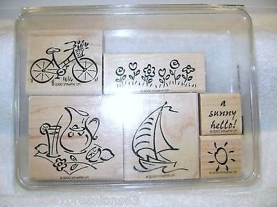 -. Title : Stampin' Up! Simply Summer - Wood Mounted Rubber Stamps - Set of 6