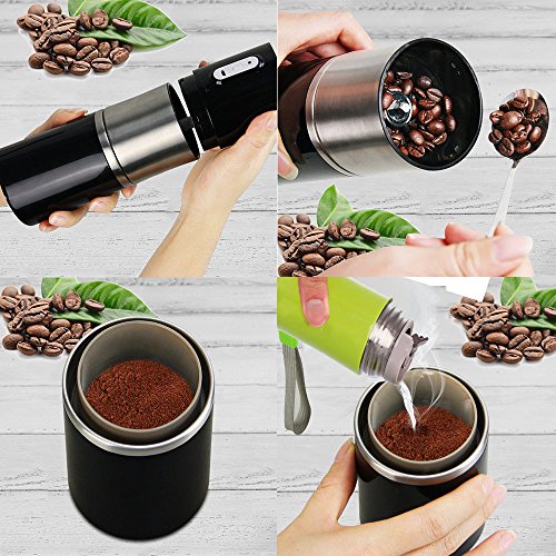 【Battery Operated】With Rechargeable Battery (include USB charger cable),After Fully Charged,You Can Use This Grinder to Grinding Your Coffee Bean 12 Times,Perfect for Travelling and Camping.