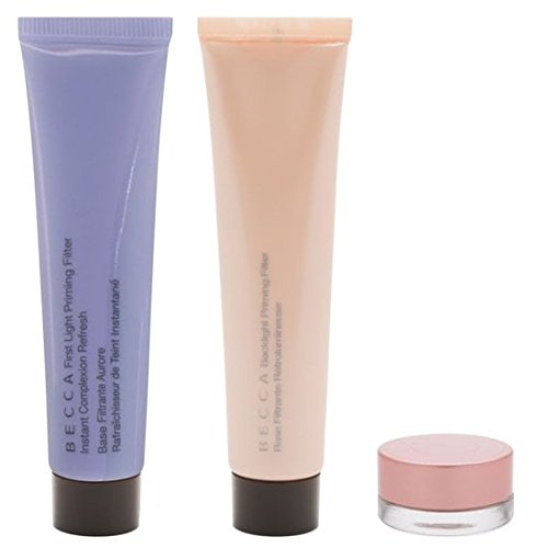 A travel-friendly kit containing Becca Cosmetics' best-selling trio: Under Eye Brightening Corrector, Backlight Priming Filter, and First Light Priming Filter. Two glow-giving primers and a color-correcting Under Eye concealer work their magic to brighten and refresh tired, lackluster skin to create a bright well-rested look.Feature