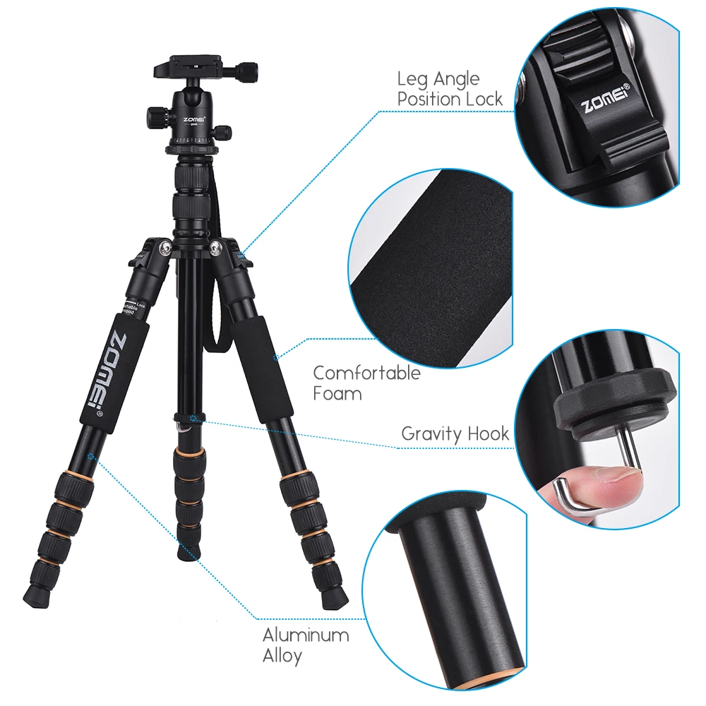 ZOMEI Q100 Q111 Q555 Q666 Q666C Camera Tripod Travel Portable Camera Tripod for Canon Nikon Sony DSLR Professional Camera Tripod