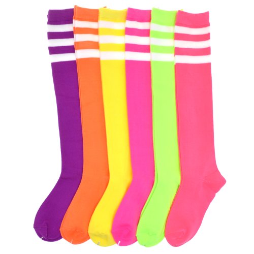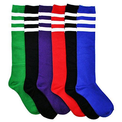 Fun knee high socks for casual wear, for school, for sports, even as costume accessory. 12 pairs assorted color stripes for your everyday needs, to dress up or down