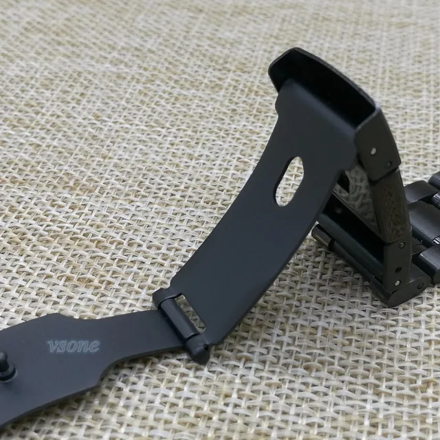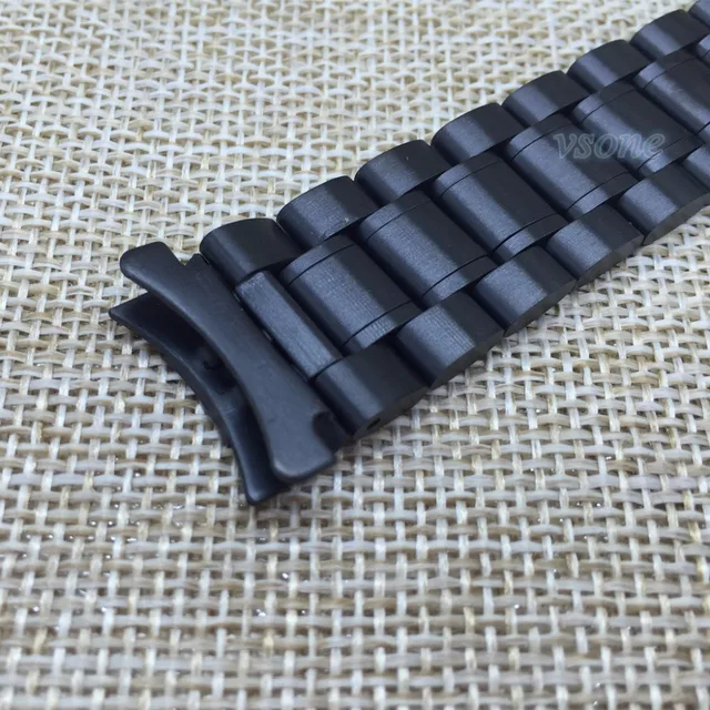 | [해외]18 미리메터 20 미리메터 22 미리메터 24 미리메터 곡선 엔드 블랙 시계 스트랩 팔찌 솔리드 스테인레스 스틸 밴드 배포 걸쇠 |