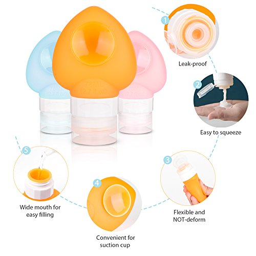- FOOD GRADE BPA FREE SILICONE - Our silicone travel bottles are made of FDA approved and 100% BPA free food grade silicone. Bottles features with soft silicone body, No matter how hard you squeeze the travel bottles, they never be deformed.