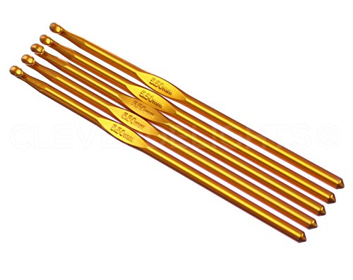 5 Pack - CleverDelights Size I (Size 9) Aluminum Crochet Hooks - 6" Length - 5.5mm Diameter - Knitting