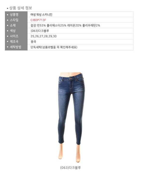 여자 딥블루 스키니 데님 진입니다 클라이드 의 러버진 만의 특성을 살려 편안한 착용감을 선사합니다