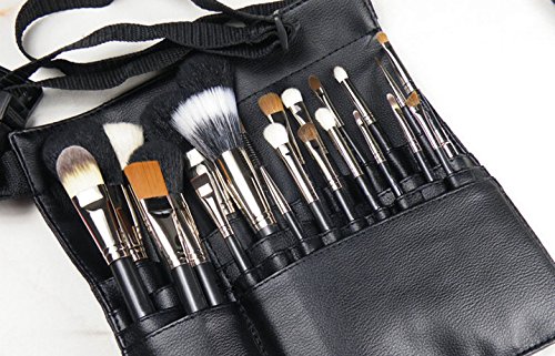 Professional Makeup Brush Bag Case Portable 22 Pockets PU Leather Cosmetic Brush Holder Organizer with Artist Belt Strap(Brushes Not Included)