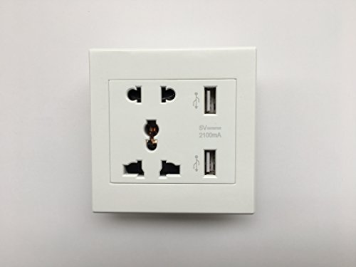 -. Feature : Compatibility: Cellphones,iPads, Tablets, P.R.Inter,eBook Reader and more / USB Output: 5V, 2.1A;Maximum current for USB output: 2.1A / Material: PC retardant Materials, eco-friendly. inside Material: Tin Phosphorous Bronze / Size: 86x86x35 mm, Charge devices simultaneously through 2 available AC outlets (US, UK All Available)