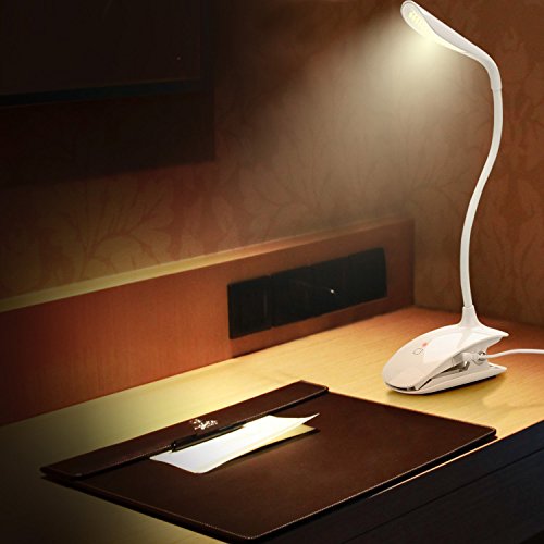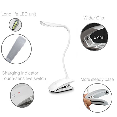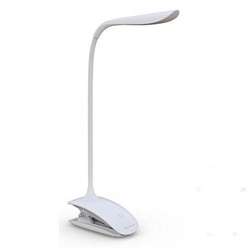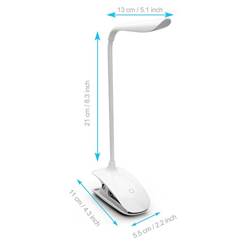 Portable Clamp On LED Desk Lamp [2 in 1: Stand on Own / Clip Everywhere] USB Rechargeable Lightweight Touch Sensor Table Lights Adjustable Brightness for Indoor & Outdoor Use