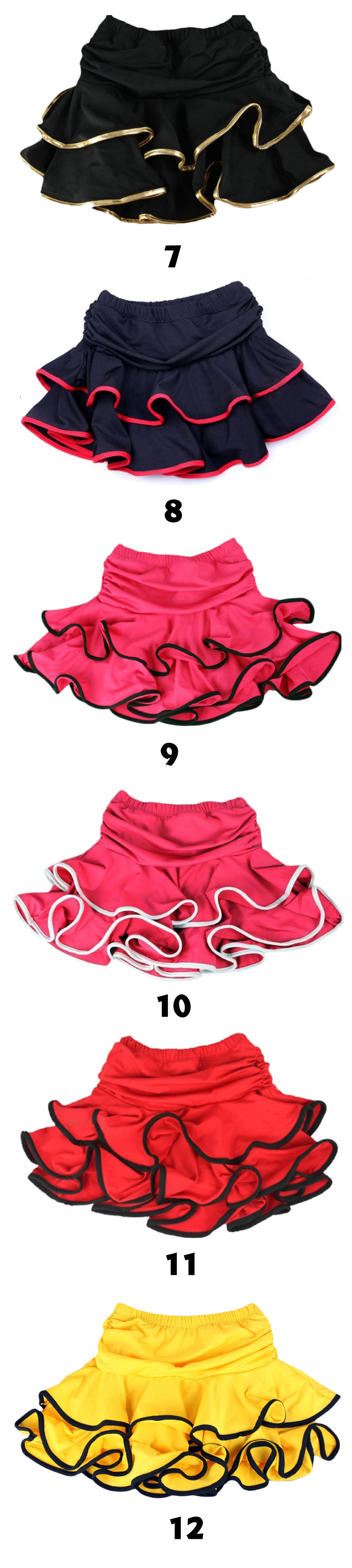 | 全12色 と豊富なバリエーションダンススカートの登場です!バイカラーの映えるパイピングミニスカート斜めにカットされたデザインなので左右の表情が違うアシンメトリーしっかりした生地の2段フリルなので重量は少々重め 社交ダンスやフラメンコにオススメ!豊富なデザインと、リーズナブルな価格帯が魅力です。素材がとても軽く、ストレッチがよく効いるのでレッスンや練習に適しています。 | |