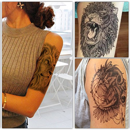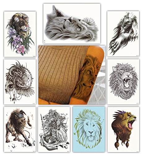 DevilFace Large Temporary tattoos for Men Women, 9 Sheets Fake Tattoo (Lion)