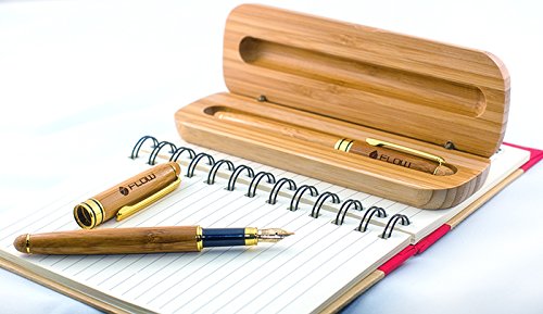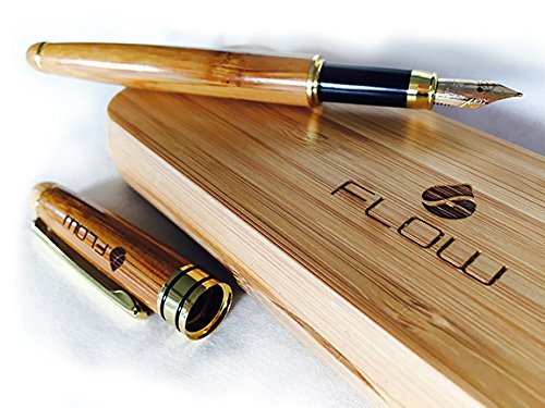 -. Title : Bamboo Fountain Pen with Black & Blue Ink Cartridges, Standard Universal Ink Converter & Case by Flow Designs | Executive Gift | Handcrafted, Vintage Style with German Iridium Nib | Eco-Friendly