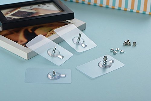 10-Pk Reusable Self Adhesive Free Nail Wall Hanger Hooks Screw, 13.2lb/6kg(Max), Non-Trace No Drilling Waterproof Transparent for Kitchen Bathroom (Screw Length:0.4"(10mm))