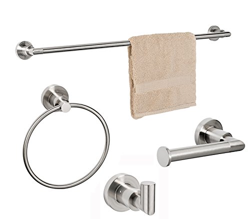 Dynasty Hardware 4000-SN-4PC Manhattan Towel Bar Set, Satin Nickel, With 24" Towel Bar (4 - Piece Set)