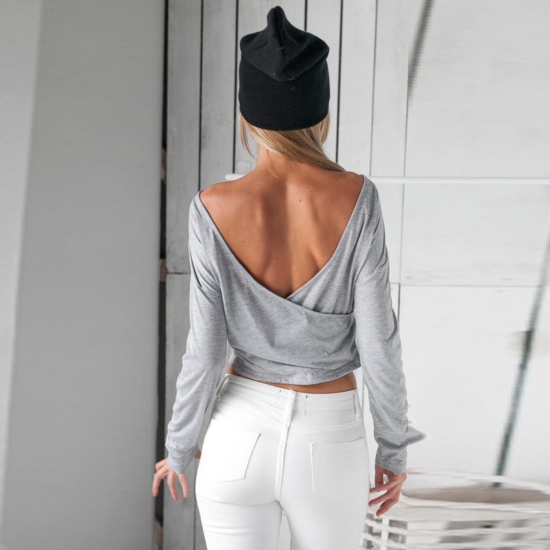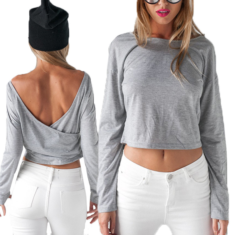Feature: Summer Fashion Womens Backless Long Sleeve Tank Tops Vest Crop Top Blouse T-Shirt.