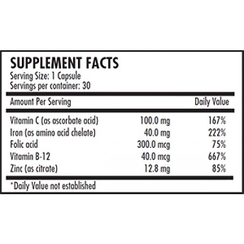 Contains vitamin C, folic acid, and zinc for maximum bioavailibility and absorption.