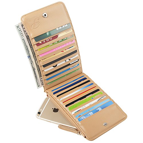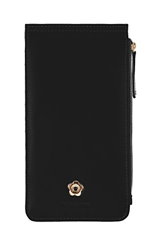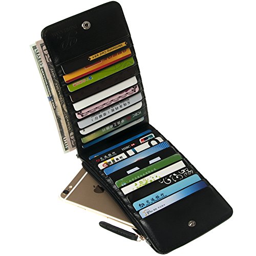 -. Feature : Dimension: 7.8"L x 3.9"W x 0.8"H(fit for iphone6/6s well);Weight:3.72 ounces / 22 card slots; 1 ID window; 2 zipper pocket / A snap closure is designed for the safety of your properties / Ultra-thin design,straight and tight seams brighten up the wallet / RFID BLOCKING - tested & approved by independent test Lab for frequency 10Mhz to 30Ghz, including 13.56 MHz in which our passport, credit cards, debit cards and ID cards operate;but NOT bolck any old Khz signal,easy to Shield against unauthorized RFID NFC and BLE scans