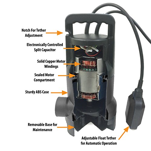Included float switch allows for multiple applications as a standard submersible or automatic operation using the float switch