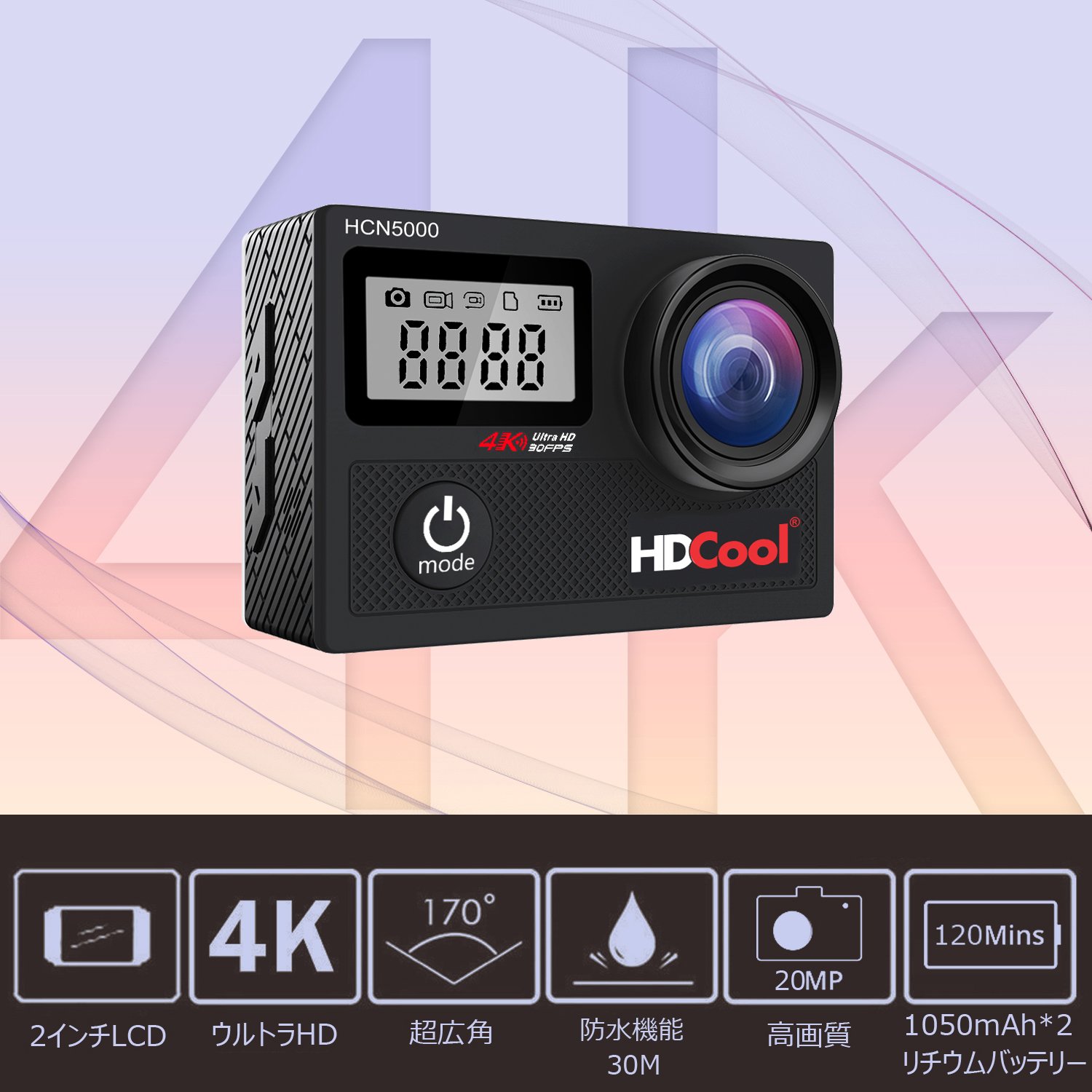 Newly equipped with hand shake correction in HDCOOL action camera, it compensates for blurring that occurs during activities such as cycling and demonstrates blur correction function even in 4K shooting and high speed recording.