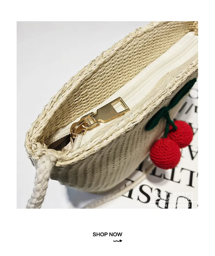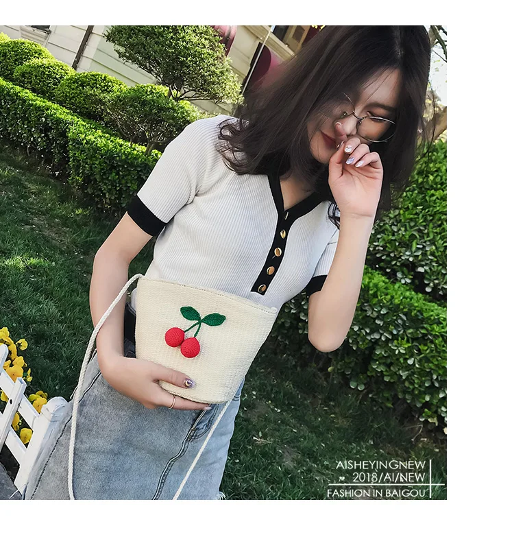 fashion cherry ball bags lovely gift:lesisure woven messenger bags for lady