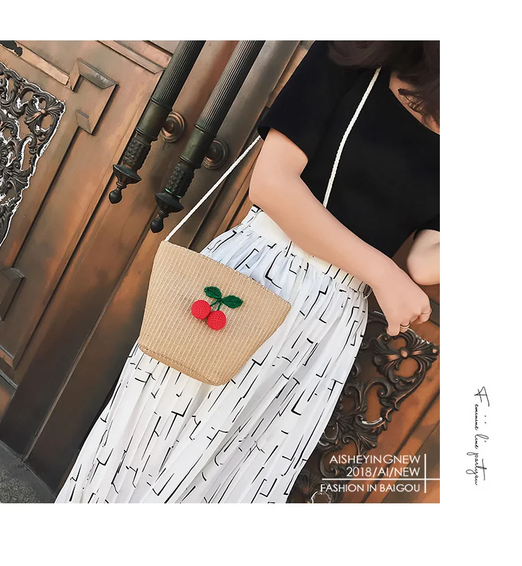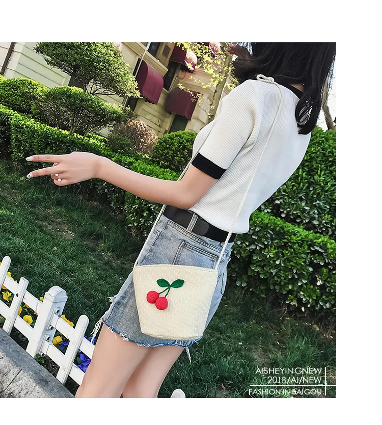 Bohemian Boho Indian Hair Straw Bag Tha:Korea Cool girl cute cherry ball ball shoulder bag
