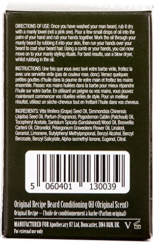 Our Original Recipe Beard Oil is our very first, original Apothecary 87 product. Created with simple goals in mind: smell MANly; reduce skin irritation; condition the beard hair and moisturise the skin with the best quality beard oil on the market.