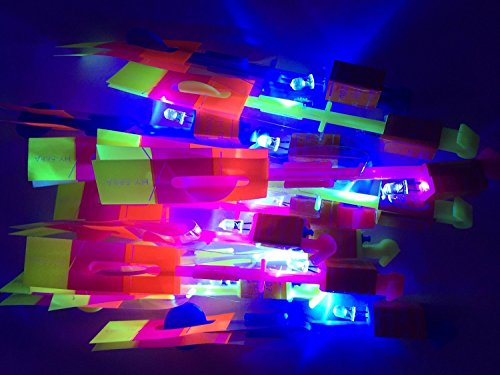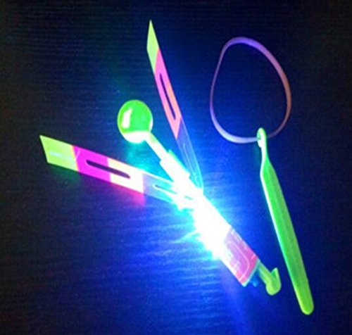 Studio : Blabroge Publisher : Blabroge Binding : Misc. Product Description Launch the helicopter into the air with the rubber band, watch it fire into the sky lit up by its LED light. When the helicopter Reaches maximum height its blades open and it drops to earth again while spinning very fast. Best used at night so that you can see its light working. BEST USED AT NIGHT Color:Mix color Party Fun Gift Arrow Rocket Flying Toy Size:Approx.15.5cm x 2cm /6.1" x 0.79" (L*W)