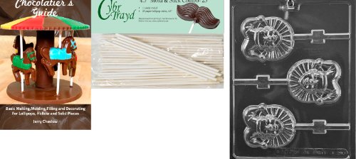 Cybrtrayd 'Mardi Gras Jester Lolly' International Chocolate Candy Mold with 25 4.5-Inch Lollipop Sticks and Chocolatier's Guide