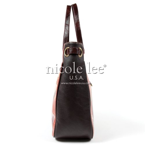 A small but fancy detail can define your whole look with the Nikky Merit shoulder bag. Exterior Features: Nikky brand logo imprinted on the shiny gold color push lock closure on front. Gorgeous silver hardware studs on front, flat bottom structure. Pink fashion stones pattern embellished on front. Single attached 22" inch shoulder strap. Interior Features: Spacious open main compartment, zip wall pocket. 2 thin individual slide pockets on each side. Fully nylon lined, fascinating prints all around the lining that simply show fashion. For cleaning, wipe with damp cloth.Feature