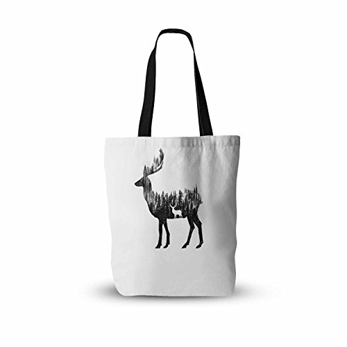 KESS InHouse BarmalisiRTB "The Deer" Black White Digital Everything Tote Bag, 16" x 16", Multicolor
