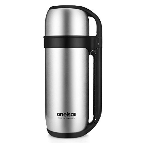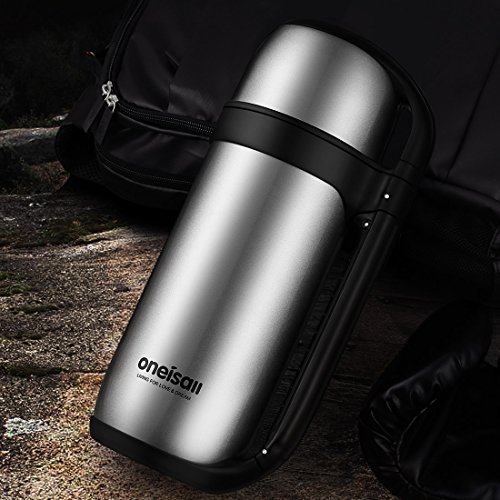 ONEISALL 1.5L/52oz Stainless Steel Flask Double-wall Insulated Thermos Large Capacity with Handle, Leak Proof, Outdoor Hiking Camping Car Travel Sport Hot Water Drinking Mug Vacuum Bottle (Silver)