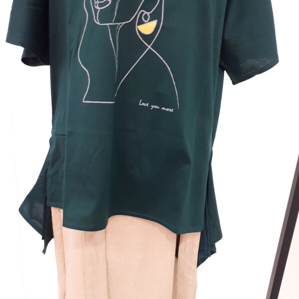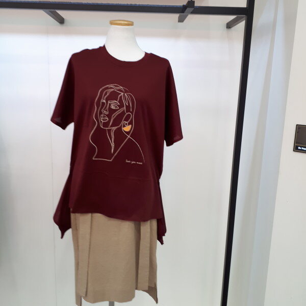 면100%의 기본라운드티셔츠입니다귀걸이모양의 예쁜무늬와 옆단이 멋스럽게 어울려져 한층 세련미를느낄수있답니다