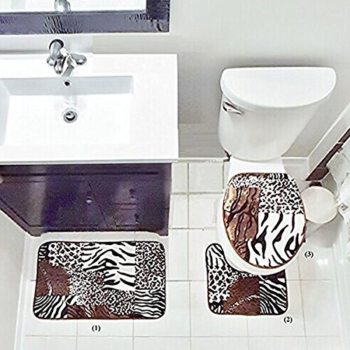 -. Title : WINOMO 3pcs Bathroom Mat Set Bath Rug Set Cover Washroom - Leopard