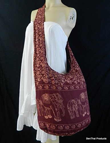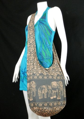 | BTP! Elephant Floral Print Sling Crossbody Shoulder Bag Purse Hippie Hobo Thai Cotton Gypsy Boh... |