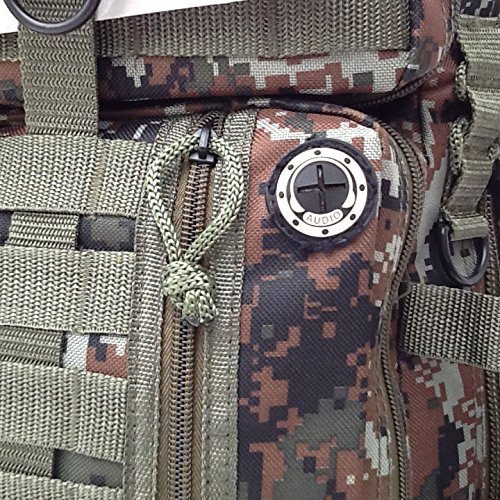 -. Feature : Perfect for outdoor use! / Wide and Thick sling shoulder strap, DM BROWN / Capacity: 1200 cu. in. / Size: 18"(Height) x 9"(Width) x 5.5"(Depth) / Multiple MOLLE style straps and Audio pass-through hole in front pocket