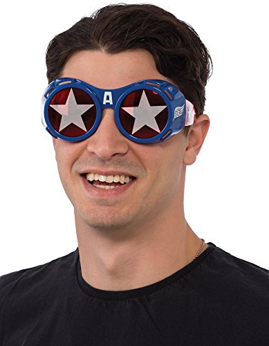 -. Binding : Apparel -. Brand : Rubie's -. Department : mens -. Feature : Marvel's Avengers 2 officially licensed costume accessory / Costume goggles / One size fits most teens and adults / In Avengers 2 Age of Ultron, the Avengers must assemble to combat the threat of Ultron, join the team in a costume from Rubie's / Complete your costume with accessories that pop -. Genre : Glasses & Sunglasses -. IsAdultProduct : 0 -. Label : Rubies Costumes - Apparel -. Manufacturer : Rubies Costumes - Apparel -. PackageQuantity : 1 -. ProductGroup : Apparel -. ProductTypeName : ADULT_COSTUME -. Publisher : Rubies Costumes - Apparel -. Studio : Rubies Costumes - Apparel -. Title : Rubie's Costume Co Men's Marvel Universe Captain America Goggles