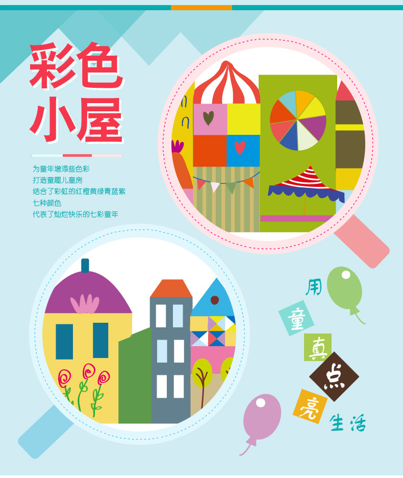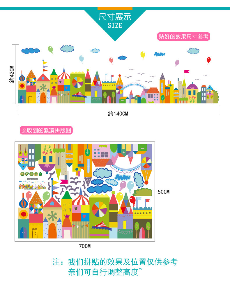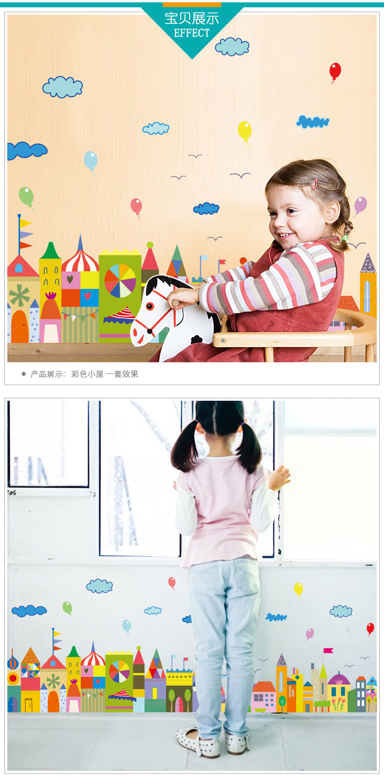 墙贴可移除 彩色小屋踢脚线 儿童房间卡通贴画地脚线防水贴纸可爱