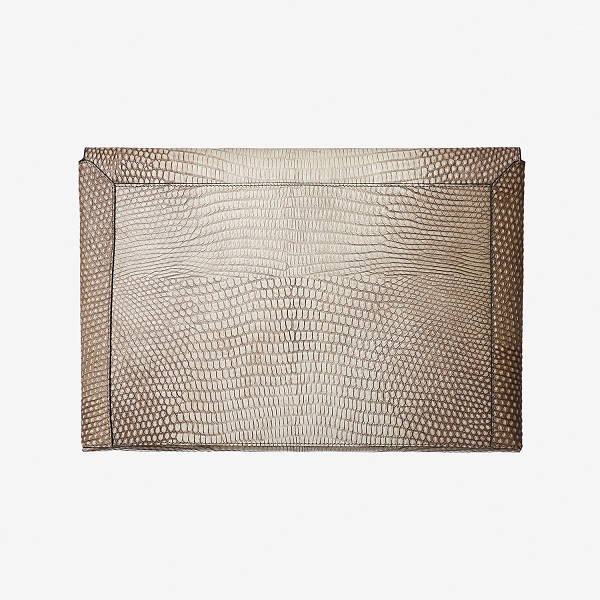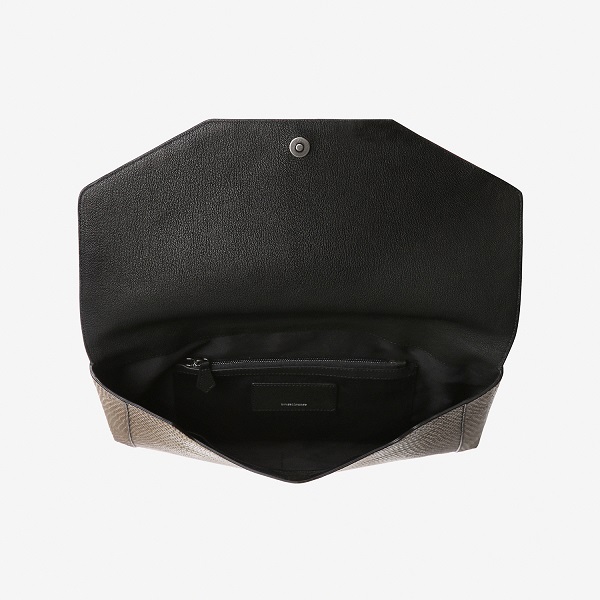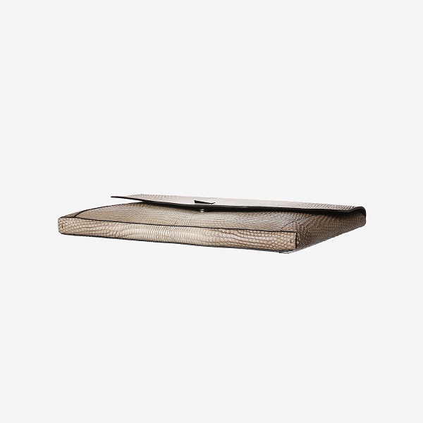 포트폴리오 형태를 가진 반듯한 클러치입니다. 사이즈가 커서 남녀구분 없이 사용가능하며 루즈앤라운지 시그니쳐 앞장식인 싱글팁 장식이 포인트 되어 보여집니다. 카스피에 다크그레이, 코코베이지, 카키 총 3 SKU로 진행합니다.
