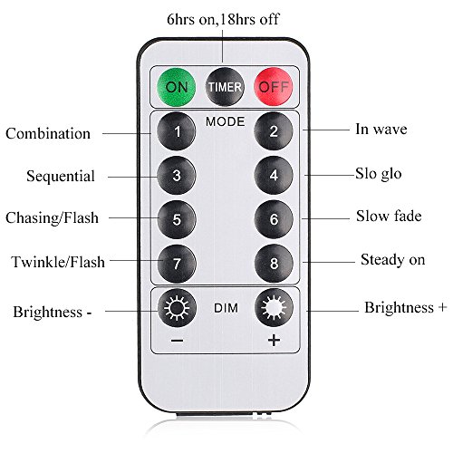 - REMOTE CONTROL: The remote control is a bonus which allows you switching the patterns (on/off and 8 modes listed above) and brightness (10 levels) anytime and anywhere. And timer setting is available with the remote which is 6 hours on and 18 hours off.