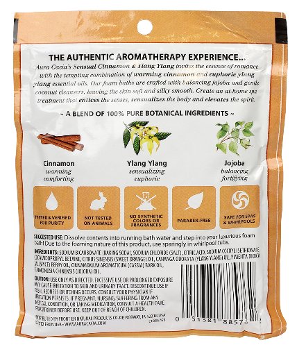 Product DescriptionAura Cacia Cinnamon/Ylang Ylang, Aromatherapy Foam Bath, 2.5 oz. Packet0