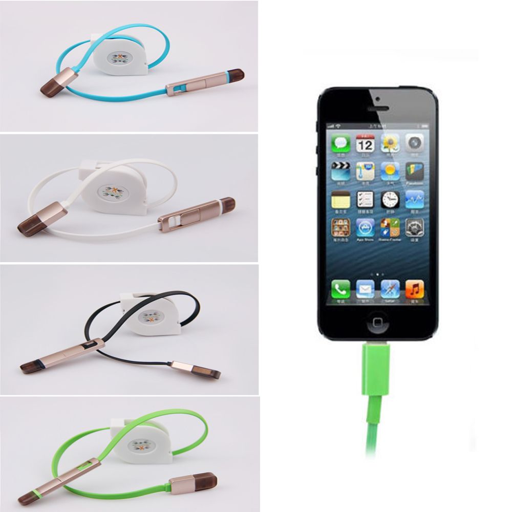 2in1 Retractable USB Cable For Data Sync And Charging
