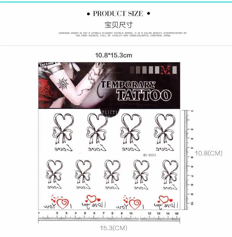 纹身贴男女假刺青贴纸小清新爱心蝴蝶结